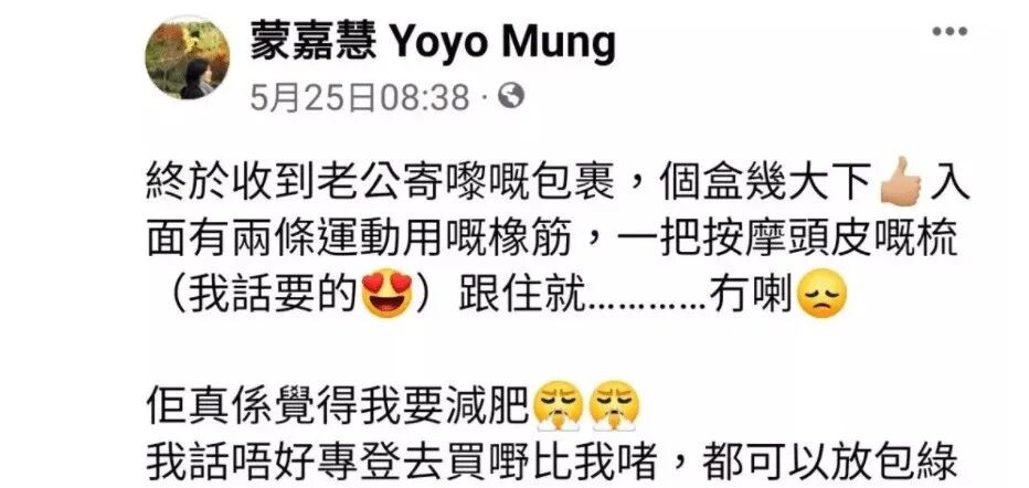一会儿是老公郑伊健寄来皮筋督促运动,
