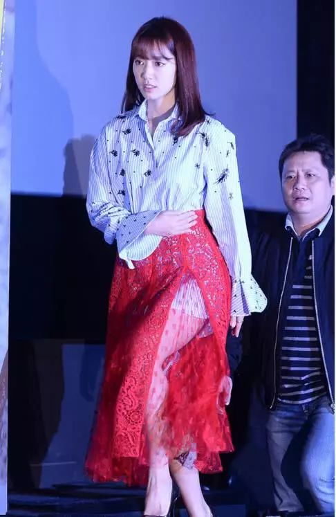 朴信惠用蓝色衬衣经典百搭,属于清爽的OL风。搭配红色蕾丝透视裙,还将蓝色衬衣内扎在红裙里,看的出她还是很潮的,不仅穿着鲜艳,这搭配也是个性大胆,好在少女气质能经受得住这样的混搭。