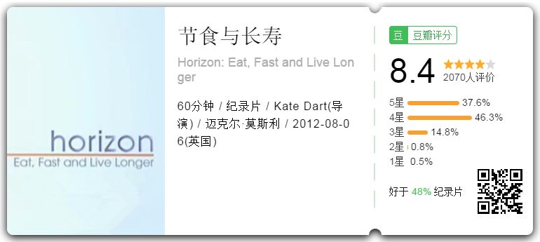 这部《节食与长寿》可以边看边记,然后甩一份笔记给管不住嘴的女朋友和热衷于转发伪科学的爹妈。