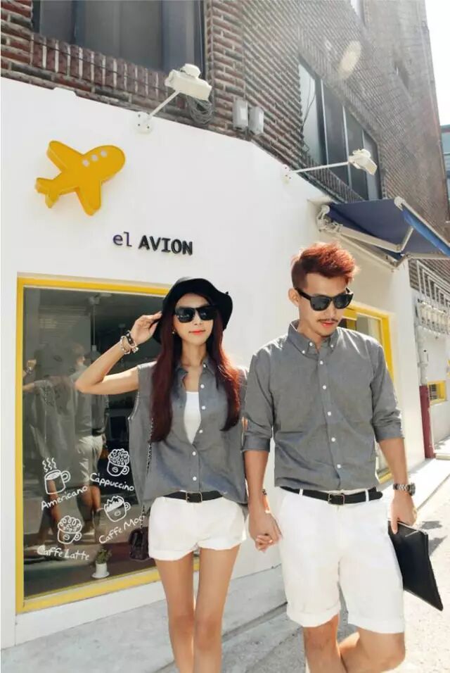 不必全身上下一模一样,同样的风格就可以完成一次实力“虐狗”。不懂搭配也别担心,只需要选择类似的简单大方的基础款就可以,比如衬衫+短裤,或者牛仔+T恤,这种大家都会吧~▼