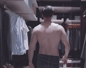 然后再光着身子去到我华丽的衣橱找衣服,顺便让你们欣赏一下我完美的倒三角身材…