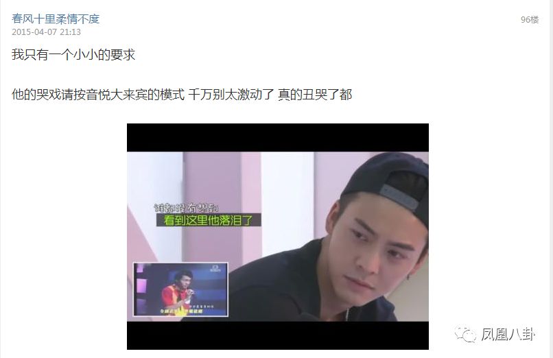 网友祈求他以后哭戏千万不要太激动,按照《音悦大来宾》中默默流泪的模式就好~