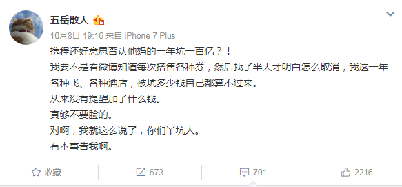 韩雪还曾因酒店订单被转卖等问题向携程投诉