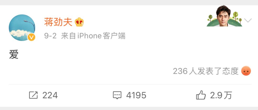 他在微博公然说:爱。