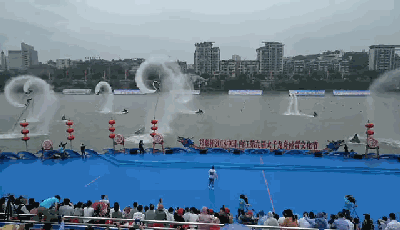 来自中国特技滑水、摩托艇队、中国飞人特技表演队为大家献上了精彩的水上特技表演,不知道大家有没有看过瘾?