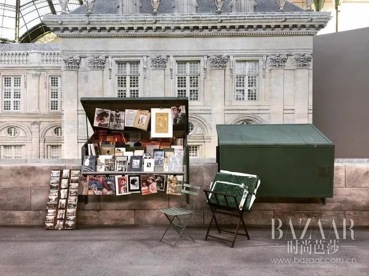 Chanel还将独家收藏了几十年的经典画报和杂志也搬到了这次的秀场,由一个又一个的小书摊承载,展现着Chanel一路以来的积淀。(摆放其中的BAZAAR封面真的很显眼了~)