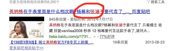 杨幂代言的英纳格手表本来是华谊想捆绑张涵予赠送姚晨,但是英纳格没要姚晨而是选择了杨幂。