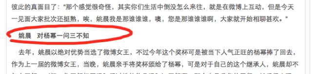 然后记者问到姚晨知道杨幂这个人吗,姚晨的回答是不知道。