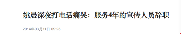 后来姚晨离开华谊,这个宣传就离职了,当时还发了一条长微博感谢姚晨,新闻闹的还很轰动。