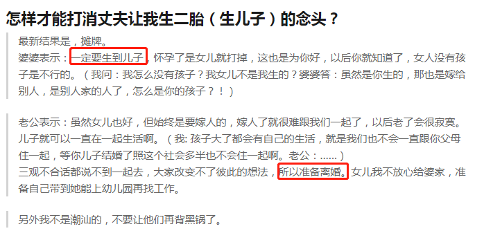 甚至有用“不生二胎就离婚”来威胁妻子的▼
