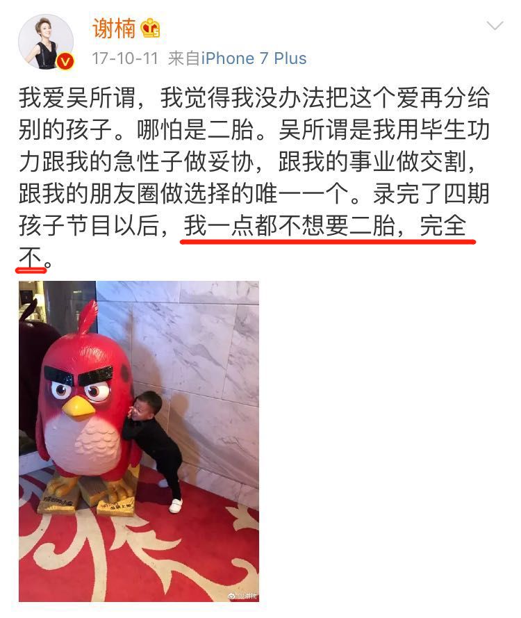 就像谢楠,曾经的她信誓旦旦地表示:不生二胎!