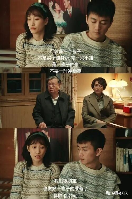 尽管导演在路知行的服道化上下了不少功夫,可那一副容颜还是遮不住陈晓与“女儿”同框似情侣的年轻态。贾笑涵虽然是00后,可整体的服道化给人的印象就是二十几岁的成熟女性而非未成年人感。一个长显成熟,一个显得年轻,也难怪两人同框似一对情侣,违和感满屏,哄女儿画面像哄女友。