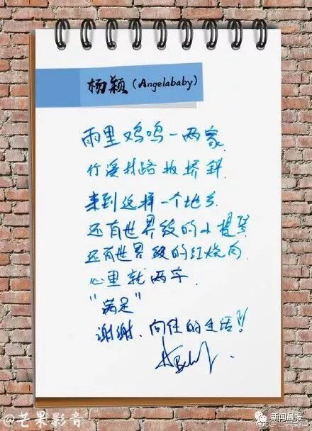 Angelababy字迹曝光。