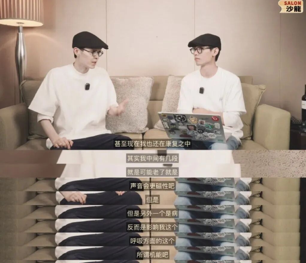 在一场谈话节目中,方大同表示,之前一段时间消失,生病是一个主要原因。而关于声音变化,一方面原因是因为自己年龄增长,“可能是老了”,另一方面因为生病会影响呼吸方面的机能,导致声音出现变化。据港媒报道,2010年方大同因操劳过度,出现(气胸)爆肺而数度住院。