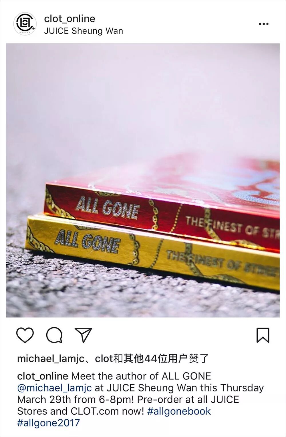 《ALL GONE》作为一本潮流大百科,每年推出的年度总结目录都是潮人们争相购买的书籍。前一阵,2017 版本仅仅在国外进行过发售,而在今天,CLOT 终于在 Instagram 上宣布,目前官网和各地区的店铺都已经开启了发售的预定。另外,香港店在本周四还会举办 Michael Dupouy 亲自到访的签售会,一直没能入手的朋友们,别忘了抓住机会。