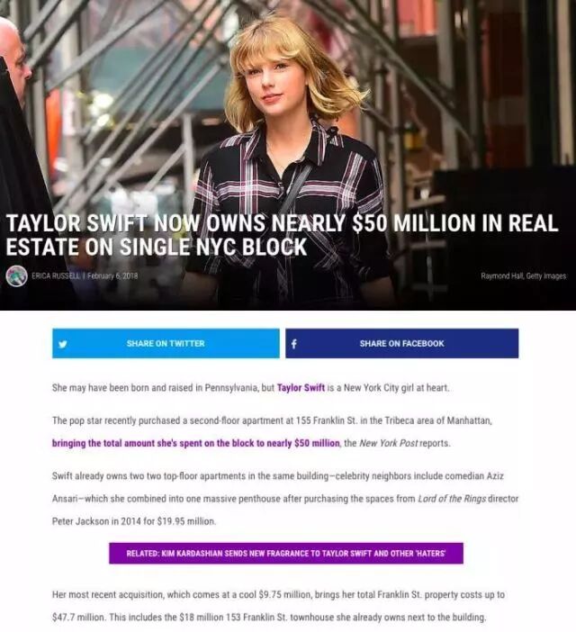 根据纽约邮报报道,继以1800万美元购入富兰克林街道153号的一座豪宅后,“房姐霉”又在富兰克林街155号以975万美元购买了一套二层公寓,至此,霉霉在富兰克林街的房产总值高达4770万美元!