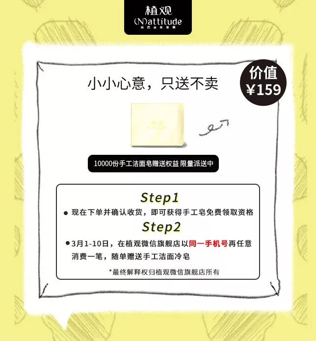 现在下单,还将自动获得植观新品——33℃特浓牛乳手工洁面冷皂的赠送权益!