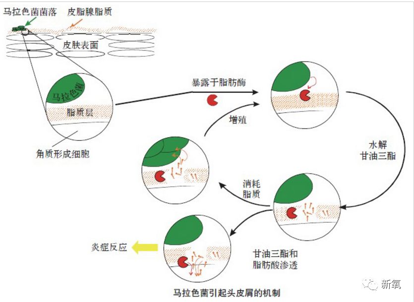 被破坏的屏障修复导致过度增殖,不仅产生更多头屑而且增加了油脂的分泌,这些油脂又为马拉色菌属提供了更丰富的营养物质···