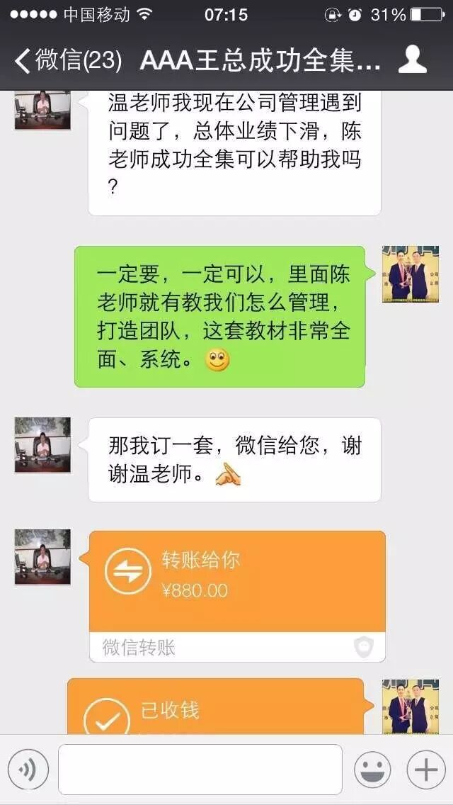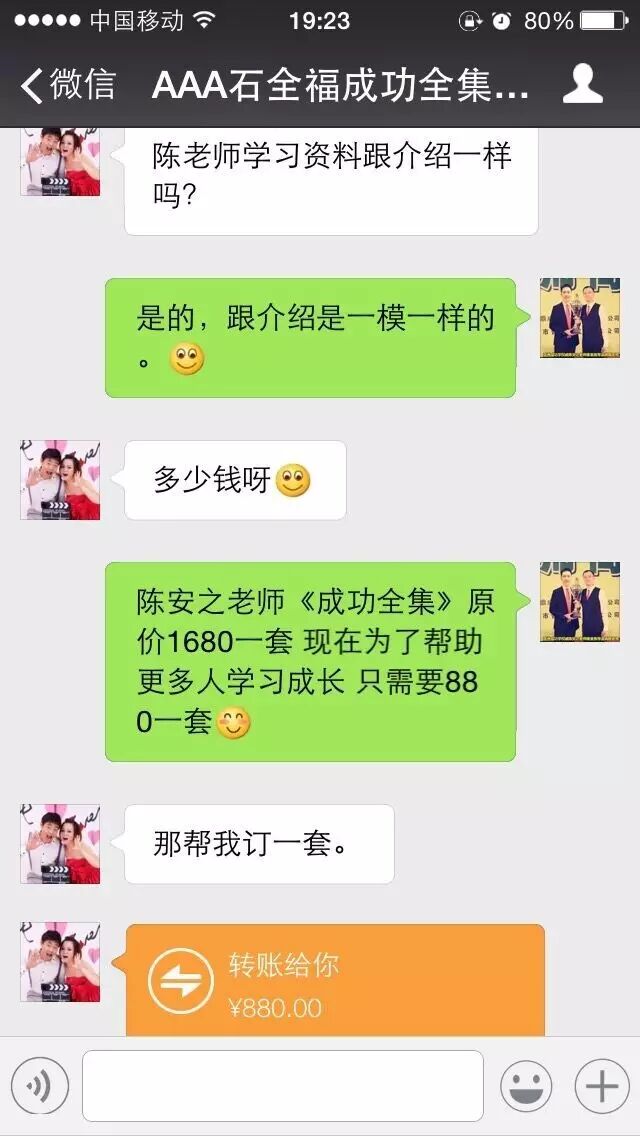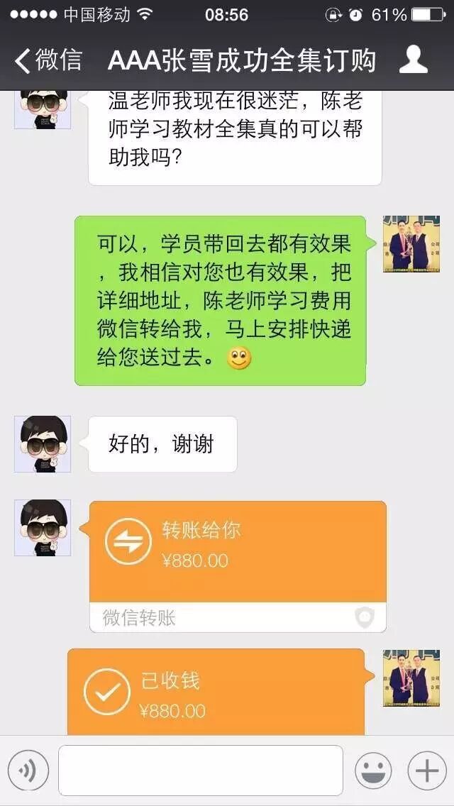 微-信直接转-账抢-购《陈安之成功全集》的学员截图: