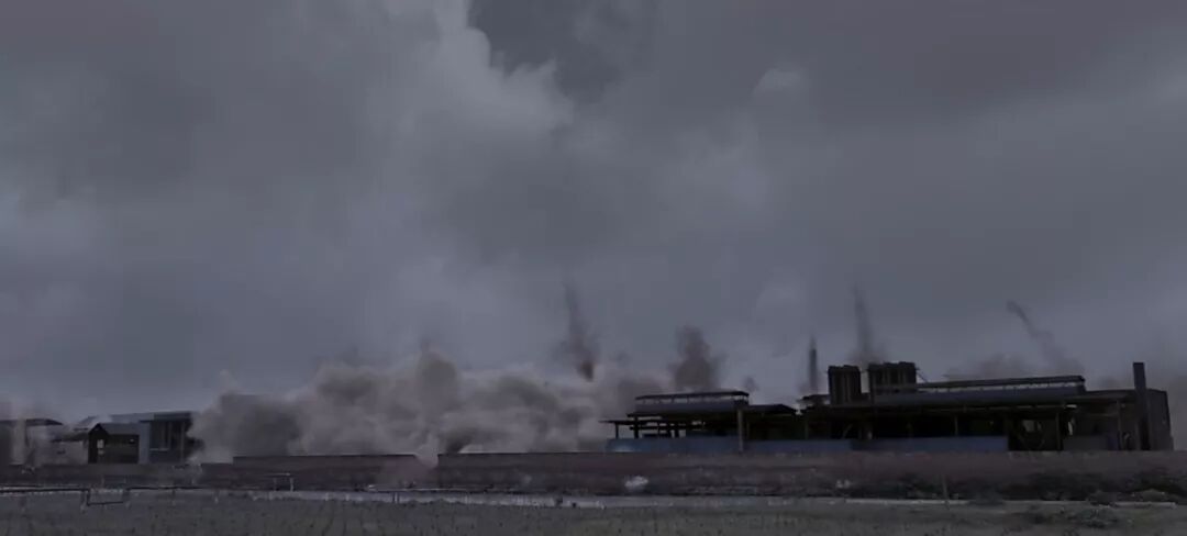 最后看着曾经工作的废弃工厂,轰然倒塌。