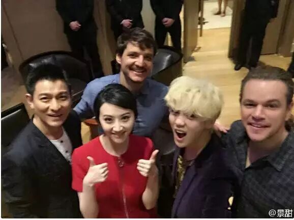 和奥斯卡影后贴面手牵手合照,看来关系不浅。后面那个人是抖森,居然在给她当人肉背景!
