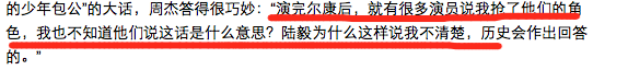 后来记者就拿这句话去问周杰,周杰说:演完尔康之后也有很多人说我抢了他们的角色,我也不知道他们说这些话是什么意思,陆毅为什么会这么说我不清楚,历史会作出回答的。