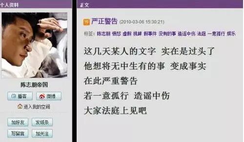随后陈志朋直接发声明说如有有人再继续胡说八道,我们法庭见吧!
