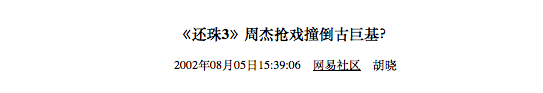 2002年在拍摄《还珠格格3》就有媒体报道周杰在片场撞到古巨基。