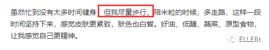 而在这篇回应中,她再次声明健身可以变美:尽管没有太多时间健身,但也会坚持在陪女儿的时候步行。这不就是老编一直倡导的,94%瘦下来不复胖,都是因为走路吗?
