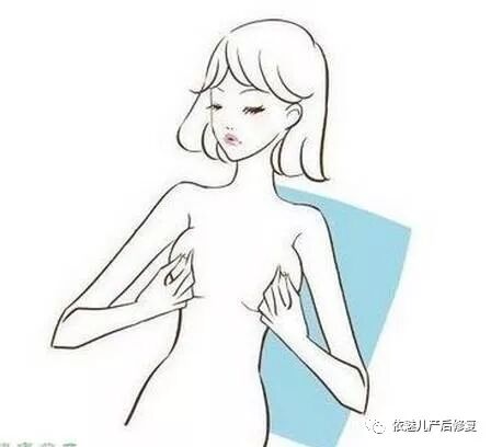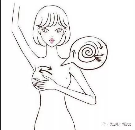 仰卧位或坐位,用左手从外侧将左乳向中间推,右手从左乳下方将左乳向上推,用力宜轻柔,反复此动作10次,双侧交替进行。