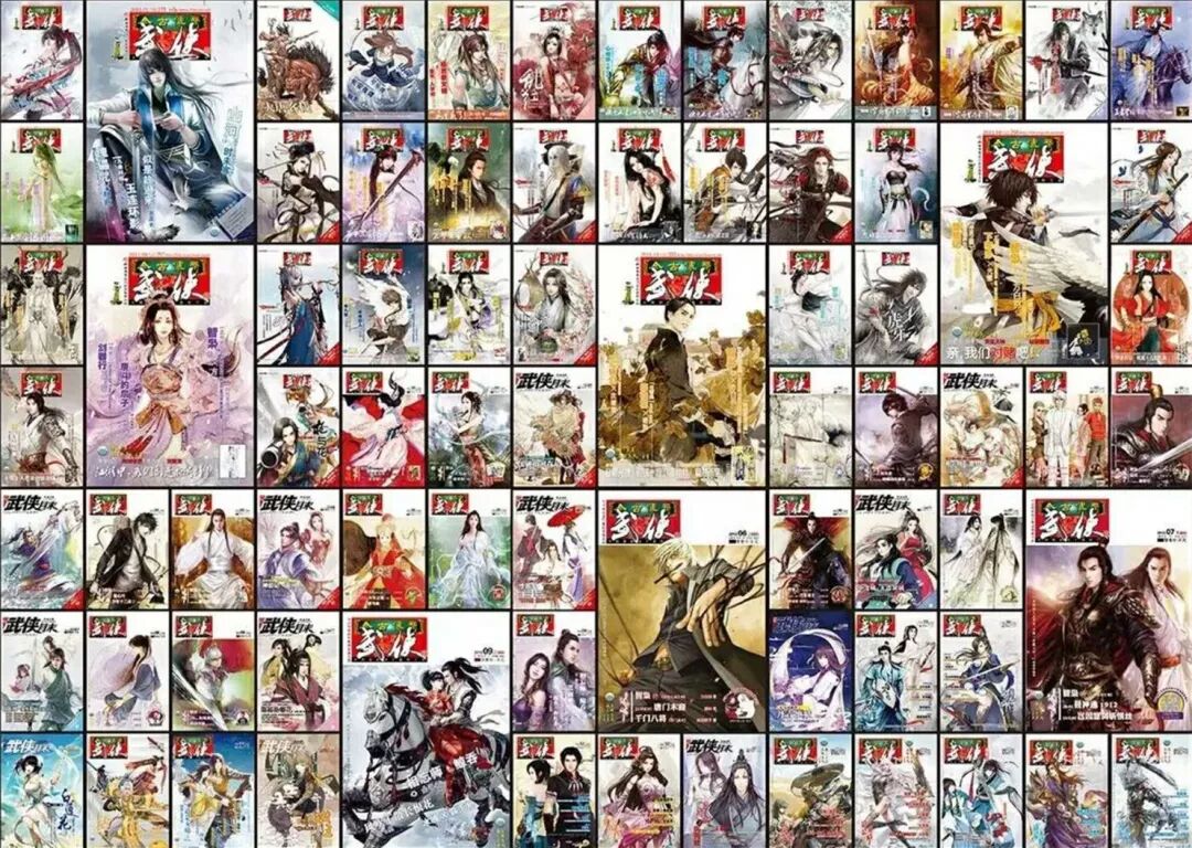▲大陆新武侠第一刊《今古传奇·武侠版》封面墙。求叔担任社长·主编期间,占据同类杂志市场95%