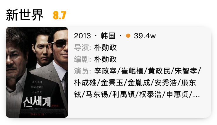 黄政民与李政宰在《新世界》之后再度同框,电影本身处处充满血腥与暴力,场面比较震撼,动作戏不拖泥带水。