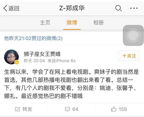 再有就是有 心细的网友发现,爽爸点赞过捧小爽黑娜扎的微博。