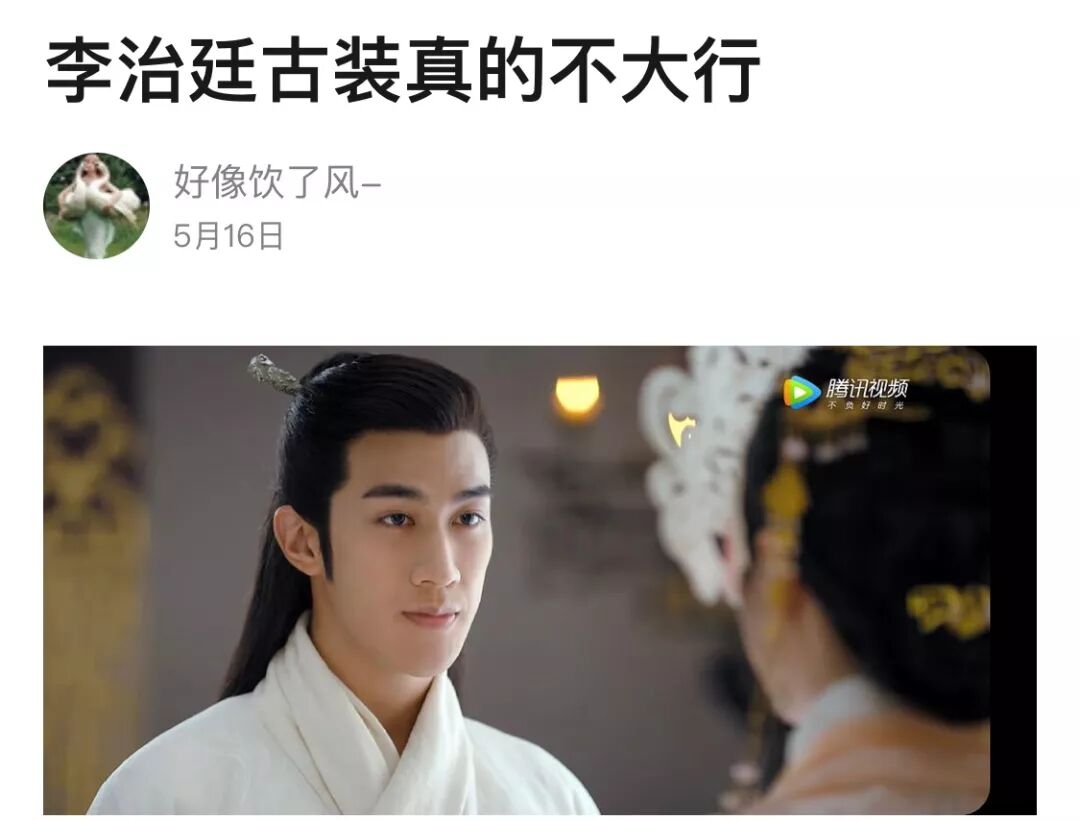 其实,这不是李治廷第一次被吐槽古装不好看。