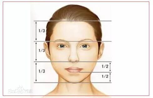 三庭:指脸的长度比例,把脸的长度分为三个等分,从前额发际线至眉骨,从眉骨至鼻底,从鼻底至下颏,各占脸长的1/3。