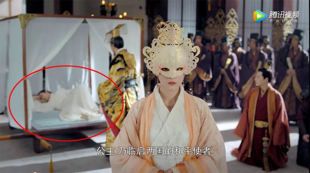 《白发》里,李治廷演男一皇子无忧,出场是这样的——无忧这个人虽然才高八斗但和皇帝老爹有矛盾,所以日常就是消极怠工。于是,女主来和亲,男一躲在家里睡觉,最后被连人带床一起架上大殿。⬇️⬇️