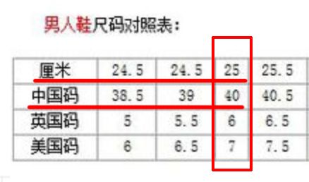 什么概念?40码的鞋长度就是25CM。⬇️⬇️
