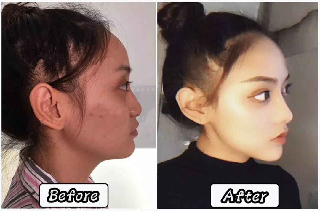 从周笔畅以前的比赛照片可以看出,下巴稍微后缩,还偏短。微调后侧面轮廓更加清晰,加长了下庭幅度,优化了面部比例和线条,弧度也更加自然。