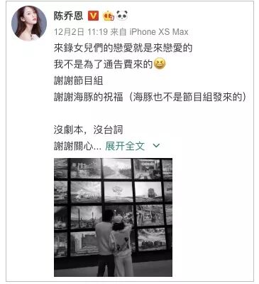 起初大家都觉得是综艺节目为了热度而炒作。戏剧性的是后面陈乔恩自己站出来在微博上高调认爱了。