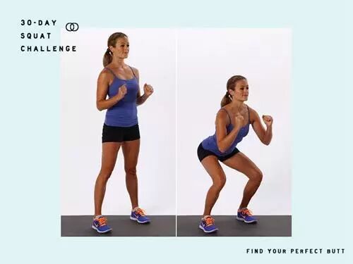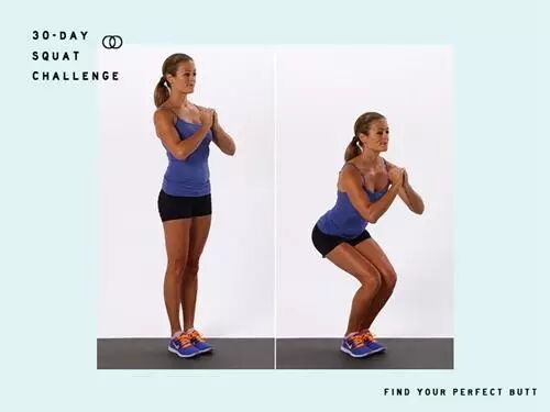 双脚并拢,双手放胸前让身体保持平衡,稳定后膝盖开始向下弯曲,直到大腿与地板平行,之后再慢慢起身完成一轮。整个动作过程,记得让重心放在脚跟上。