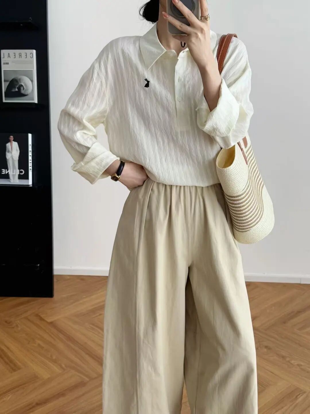 解开两颗扣,顺着脖颈线条自然收束,圆脸/短颈姐妹秒变天鹅颈,显瘦又显气质~ 配阔腿牛仔裤是慵懒日常,搭卡其裤能直接出门遛弯,宅家自拍随手抓拍都好看,通勤约会更是把「松弛时髦」焊在身上!
