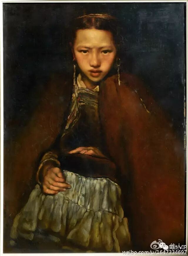 这张叫《村长的女儿》,是我很喜欢的一张画,以前在拍卖会上买的。画家叫庞茂琨现在是川美的教授,前两天看展览遇到了向他求证创作的时间,1988年,那时他才25岁,真棒!