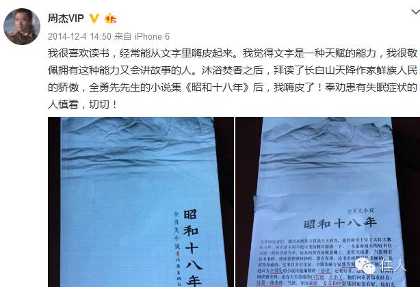 诗词水准不错,没点底蕴难写出来。周杰也说喜爱读书,“经常能从文字里嗨皮起来”,勤写书评,还给网友荐书。