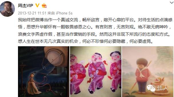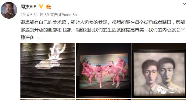 具体藏品是啥价值如何,周杰并不愿曝光,但微博上晒出过相当多的画作、艺术品。早年学过画画的周杰,的确很有眼光。