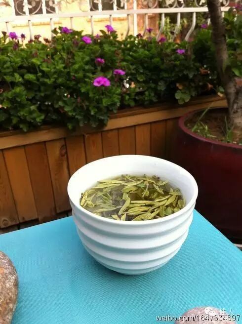 饭后一杯龙井新茶,配着小花,就是幸福。
