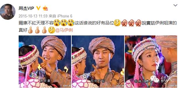 2013年赵薇《致青春》上映,周杰观影支持,默默的,并未@赵薇。