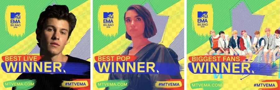 其它奖项方面就显得中规中矩了,去年 EMA 的大赢家“萌德”Shawn Mendes 今年表现平平,只拿到了“最佳现场”一项,而刚来中国开完(不算愉快的)演唱会的 Dua Lipa 摘得“最佳流行艺人”。另外超人气组合防弹少年团(BTS)则毫无意外地拿下了“最具人气艺人”。