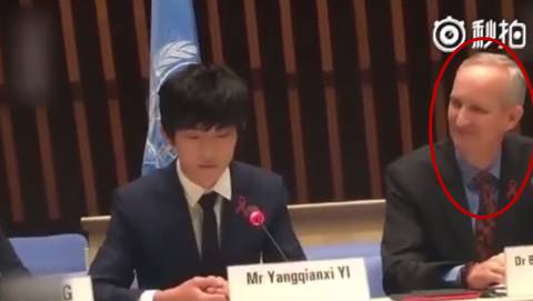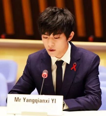另一位中国青年代表——TFboys易烊千玺也做了全英文演讲,主题为《拥抱不同!用关爱消除歧视》(To embrace difference, and to end discrimination with love)。