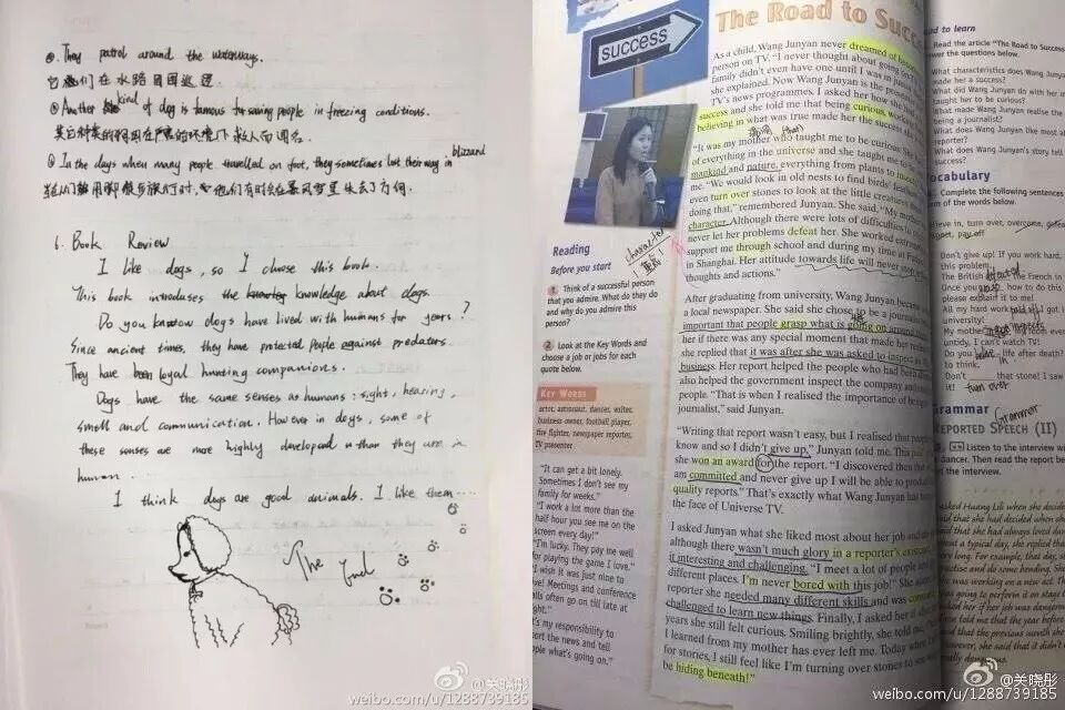 还晒出了自己的中学英文笔记↓↓