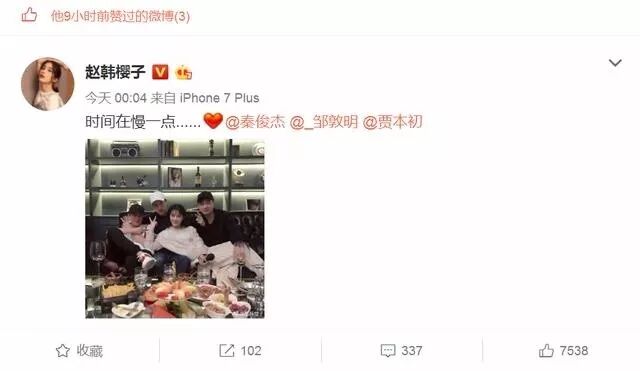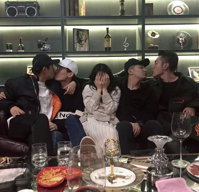 但是,我们却发现,秦俊杰的另一个女同学赵韩樱子发了一张当天聚会的图,让人不得不说尺度是否过了。连秦俊杰都知道没发出来,这个女同学却发了出来!照片里面,女同学侧卧在两个男同学的腿上,而秦俊杰被挤到一旁,差点要掉下去了!
